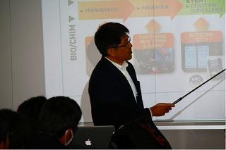 CBRNeシーバーン:Chemical(化学),Biological(生物),Radiological(放射性物質),Nuclear(核),Explosive(爆発物)の頭文字)は大量破壊兵器に使われるような特殊危険物の総称です。今日では,平穏な日常社会の中でもテロや犯罪の手段として手軽に使われるようになり,例えばサリン事件のような化学薬品によるテロ行為,さらには福島第一原子力発電所の事故など,人為的あるいは二次的な災害のリスクが高まっていることをお話しいただきました。