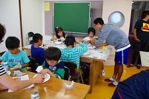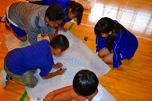 自己紹介ゲームでは,小・中・高校生が1つになれた気がしたし,練習では上手くできなかった「サバ飯づくり」では,とてもきれいに炊くことができた。また,自分たちが企画した「防災○×ゲーム」,先生が企画した「ハザードマップづくり」どちらも小学生は楽しんでおり意欲を感じた。