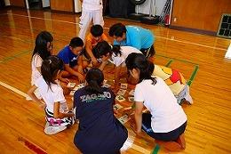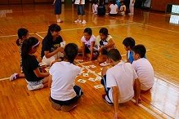 自己紹介ゲームでは,小・中・高校生が1つになれた気がしたし,練習では上手くできなかった「サバ飯づくり」では,とてもきれいに炊くことができた。また,自分たちが企画した「防災○×ゲーム」,先生が企画した「ハザードマップづくり」どちらも小学生は楽しんでおり意欲を感じた。
