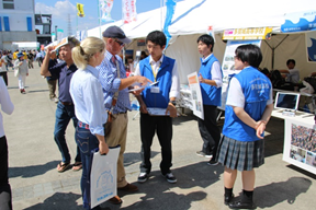第46回全国消防救助技術大会(8月23日グランディ21で開催)と第11回全国和牛能力共進会・宮城大会(9月9日夢メッセせんだいで開催)で、本校の防災減災の取り組みをブース展示しました。参加された方々に本校防災委員が本校の取り組みを説明。多賀城市を襲った「都市型津波」の脅威と「津波波高標示プレート」の設置活動等ついてパネル等を通して話しました。また、全国和牛大会では、「まち歩き」ボランティアも行い、多くの方に防災減災の大切さを訴えることができました。
