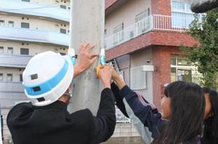 また、「波高表示プレート更新作業」の体験学習で、津波到達の高さに驚きながら、一本一本丁寧にプレートを張り替えました。それぞれのグループ活動に参加した生徒は一様に東日本大震災の被害の大きさに驚き、防災活動の大切さを身をもって感じたともらしていました。