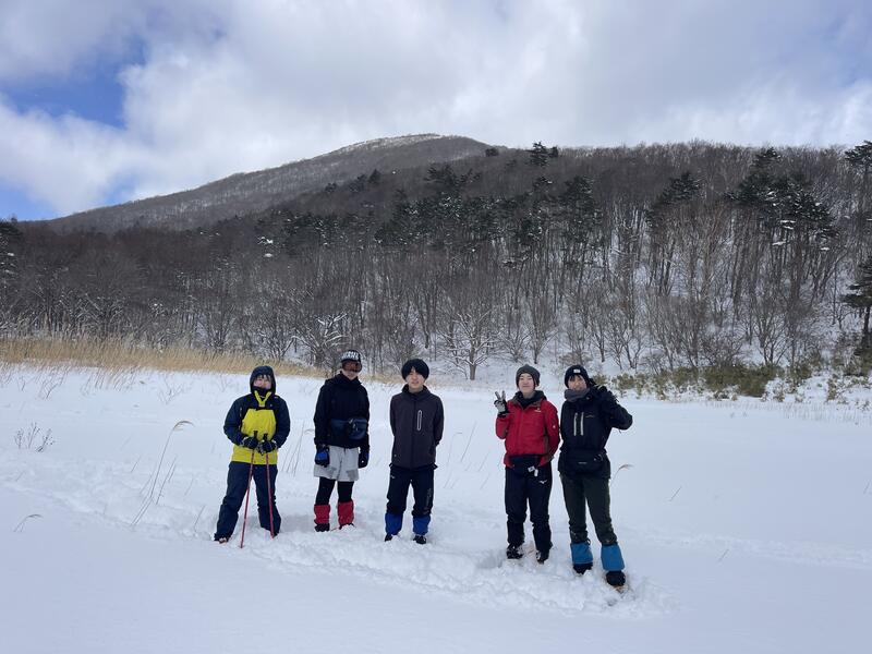 1月:雪が豊富になってくるので,泉ヶ岳スキー場の上部などで「わかんじき」を着用した雪上歩行訓練を実施します。あわせて,白石スキー場などを会場としたスキー訓練も実施します。未経験の人でも引率者が基礎から教えるので,滑れるようになります。最近ではほとんどが現地でスキーレンタルを利用しており,滑れる人はスキーを現地でレンタルしたのち,自分の技量の向上に自由に滑走訓練をしている生徒もいます。