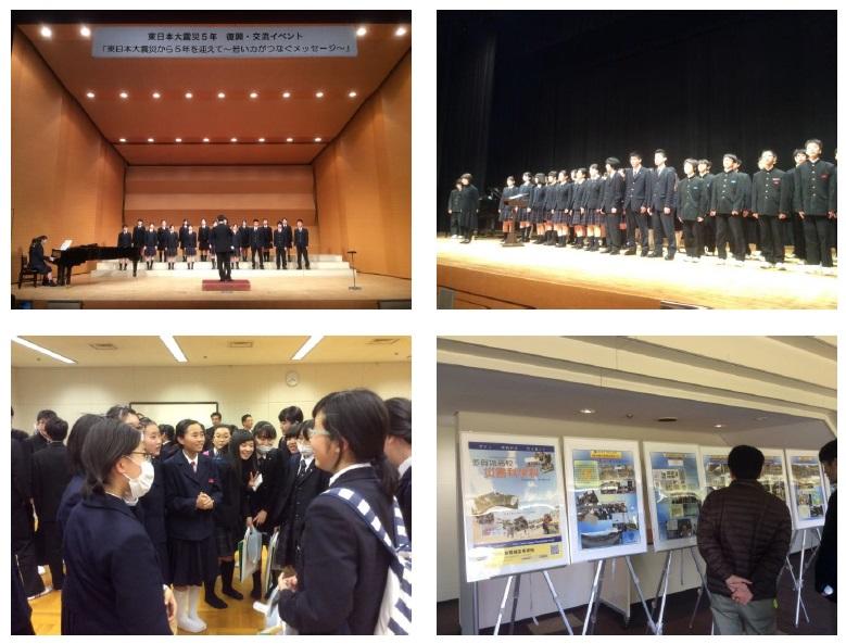 3月5日(土)に三重県のみえ防災・減災センターが主催した震災復興・交流イベントへ合唱部の生徒に出演依頼があり参加しました。合唱と語りで被災地からのメッセージを伝え、伊勢市立五十鈴中学校の合唱部の生徒たちと合同合唱を行い、交流しました。