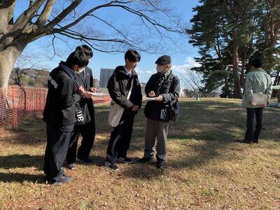 3月27日(水)、多賀城碑(壺の碑)で行われた俳句のワークショップに語学研究部員3名が参加しました。講師の宮城県出身の俳人である高野ムツオさんからアドバイスを受けながら、春の日差しを感じながら、俳句を詠む機会をいただきました。3月特有の冷たい風が吹き「春疾風(はるはやて)」という表現など、季語を紹介していただきながら、言葉に触れることができました。
