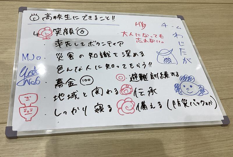 輪島高校との交流会は、ただお互いの震災状況を共有し合うだけでなく、私たち高校生にできることはあるのかという議論をし、防災や伝承の色々な見方やあり方を学ぶことができる有意義な時間になりました。同じ高校生同士、互いの地域の特産品や学校生活などを話し、穏やかな雰囲気で交流することができました。輪島の生徒とは災害を経験した時期が違い、今までとは異なる視点からの意見を聞くことができました。起きた災害をどう伝承していくか、「事前にできることは何なのか明確にしておくこと」が重要であること、「笑顔は人の心を救う」ということが一番印象に残っています。今後も高校生だからこそできることを見つけ、多くの人の役に立ちたいです。