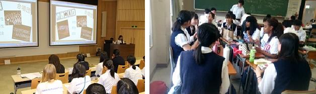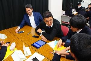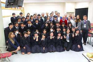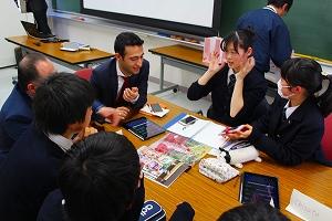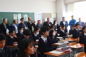ディスカッションの後は,それぞれの教室を巡り,実際の授業の様子を皆さんに見学していただき,普通科1年生のコミュニケーション英語Ⅰの授業には一緒に参加もしていただきました。