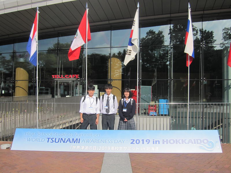 9月10日(火)~11日(水)に「『世界津波の日』2019高校生サミットin 北海道」が,北海道立総合体育センターを会場に行われ,本校からは3名の生徒が参加してきました。事前には,本校が行っている,多賀城市内の被災地を歩く「まち歩き」に参加したり,八幡地区で,地元の方から当時の様子や被災状況を教えていただき,その後,八幡地区の施設に津波標識設置活動を行ったことを踏まえて,サミットに参加しました。