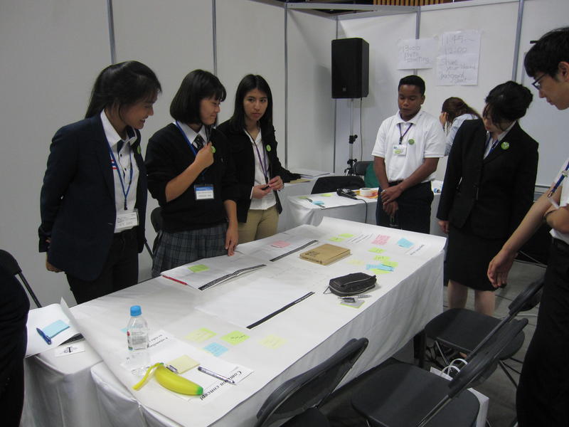 1日目の分科会は,日本の6つの高校と,アルゼンチン,パラオ,タイの代表高校と,英語を公用語として行われ,本校は,これまでの防災活動の取り組み,今後の課題などについて発表しました。その後,分科会ごとに話合い提言をまとめました。