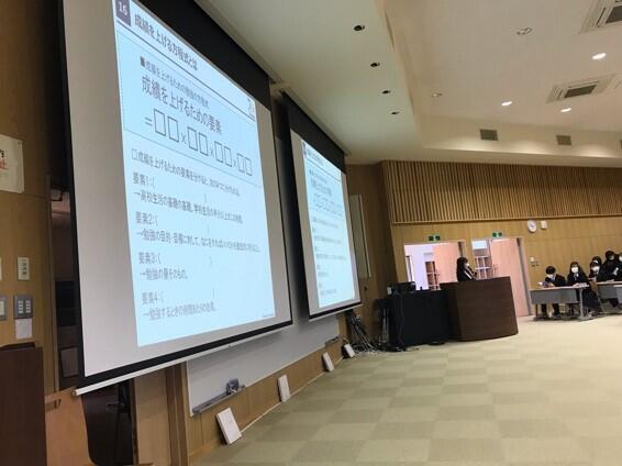令和5年1月19日(木)7校時,シチズンシップ教育の一環として,1年生を対象にした「裁判制度に関する講座」を開催しました。今回は,仙台地方検察庁より宮尾友里恵様を講師にお迎えし,検察庁の組織や仕事内容に関すること,事件発生から起訴に至るまでの流れ,そして「裁判員制度」の仕組み等についてお話をいただきました。