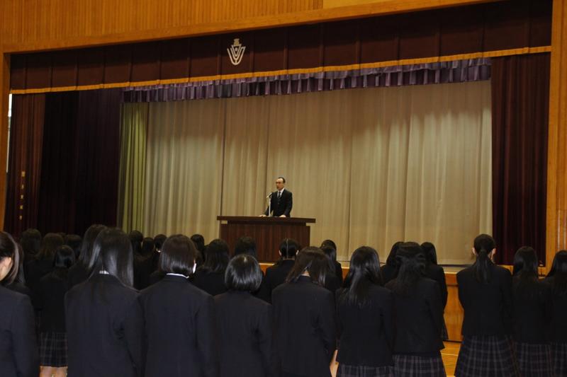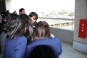 最後に、平成28年1月にあった「ぼうさい甲子園『高校の部優秀賞』受賞記念発表報告(兵庫県公館)を生徒会の亀山沙月さん(2年)、高橋里奈さん(1年)が行った。