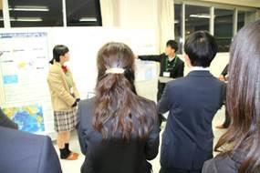 災害科学科での野外実習などの取組の様子や生徒会が行っている波高聞き取り調査やボランティア活動,生徒間交流についての報告がありました。
