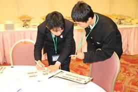 懇親会では,「デートゲーム」という交流ゲームを通して,参加者が他校の生徒と情報交換を行いました。それまでの発表という堅い形ではなく,それぞれの学校の様子や,今取り組んでいることなどについて情報交換を行いました。