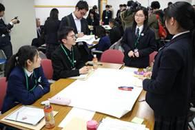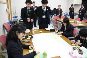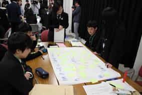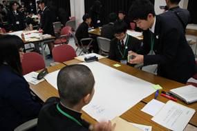 前日の交流会のせいもあってか,活発な意見交換がなされました。防災・減災について意識の高い生徒のためか,場面で起こりうる危険性やその予防方法についても細かなところまで意見が出されました。特に災害弱者と呼ばれる高齢者,身体障害者,妊婦などの避難についても配慮がなされる話し合いがもたれました。