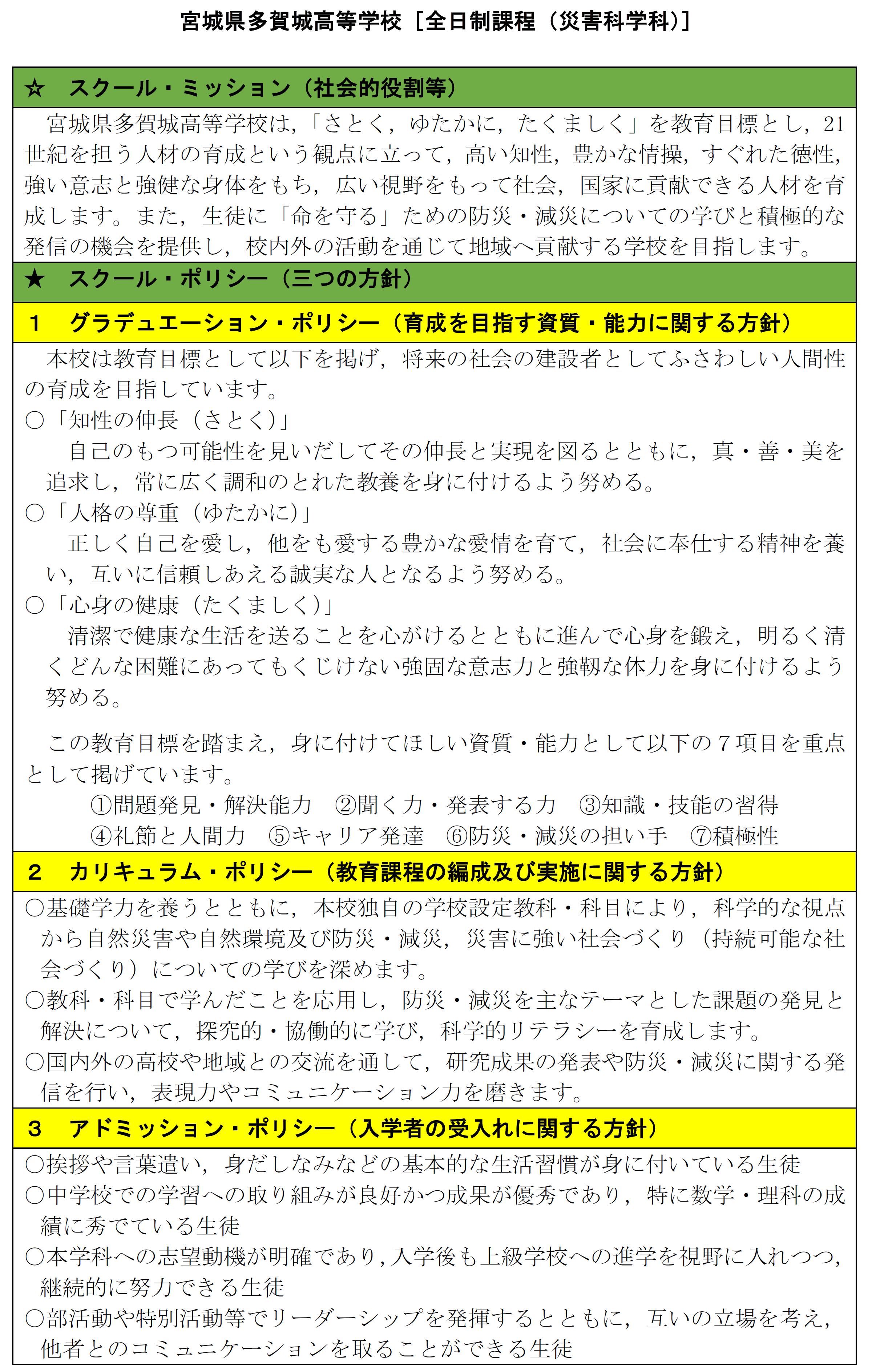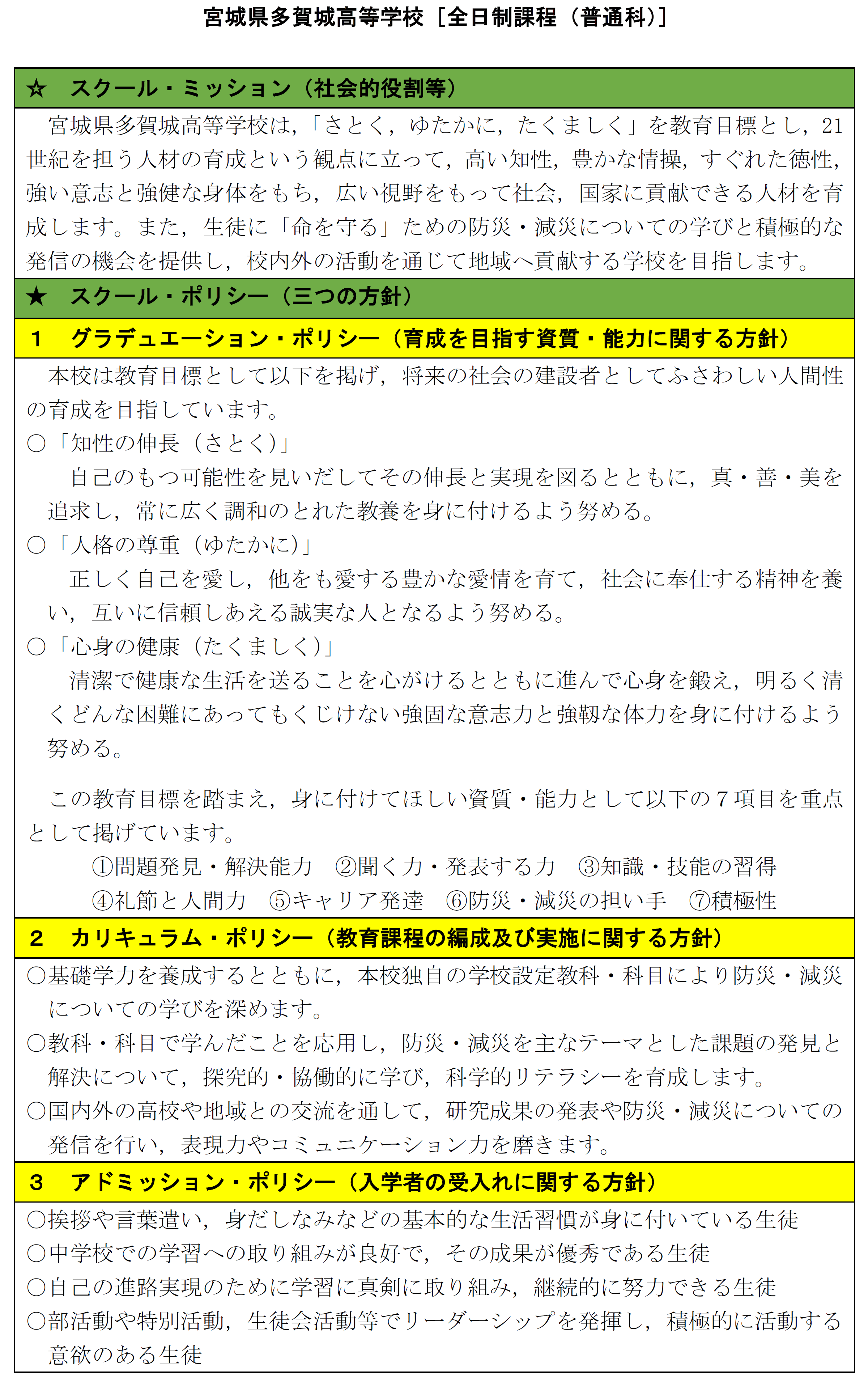上記2つをPDFファイルとして、こちらからダウンロードできます→多賀城高校スクールポリシー.pdf