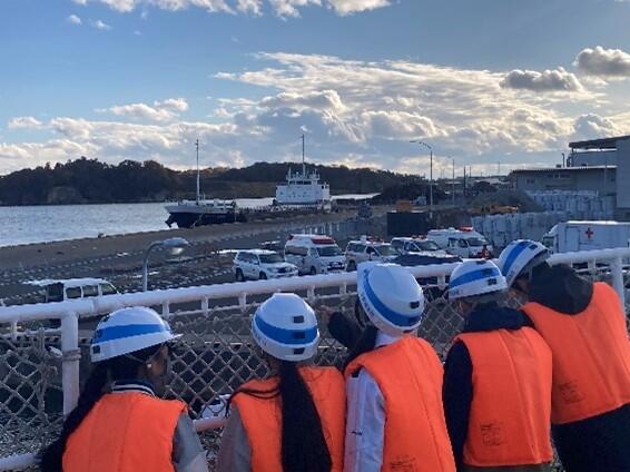 宮城海上保安部と日本赤十字社宮城県支部による合同訓練を見学し、発災時に求められる行動を事前に理解しておくことの重要性を強く感じました。特に印象に残ったのは、隊員の方々が船内に入る前に装備品を装着していた場面です。はじめは多くの隊員が装備品のケース付近に集まり、動線が見えにくいほど混雑していました。しかし、その後は声をかけ合い、装備を互いに受け渡す姿が見られ、作業が次第にスムーズになっていきました。実際の災害時には天候の影響も加わり、さらに混乱した状況が想定されます。そのため、このような日々の訓練で生まれる小さな工夫や助け合いが、限られた時間の中でより良い行動につながる欠かせない要素であることを学びました。
