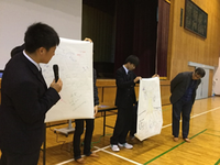 岩手大学理工学部システム創成工学科教授の高木浩一先生から,理系と文系の学問として問題解決の方法の違い,小学校,中学校,高等学校,大学それぞれでの勉強の違いを講義いただきました。その後,6人程度のグループに分かれ,グループ内での話合いや発表を通じて問題解決する方法を学びました。